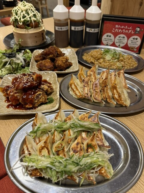 仕込みからこだわる種類豊富な餃子と手間暇かける逸品を気軽に味わえる【餃子のかっちゃん 近鉄四日市店】。噛んだ瞬間に口の中に広がるニンニクの香り広がるジューシーな焼き餃子は一度はお召し上がりいただきたい逸品。ニンニク無しもございます◎またシーンに合わせて選べるお得なコースも多彩にご用意しておりますので、飲み放題と合わせてどうぞ。昭和レトロな空間は各種お集まりにもぴったり!ぜひワイワイ楽しいひとときを...♪