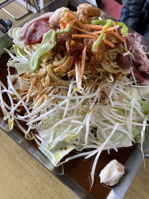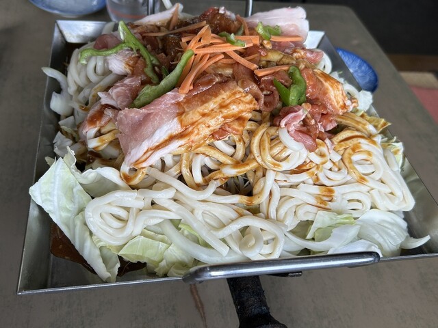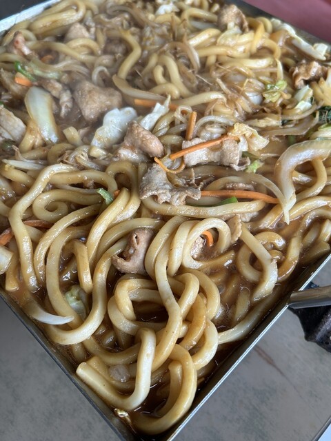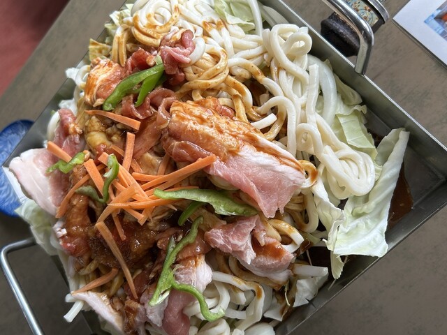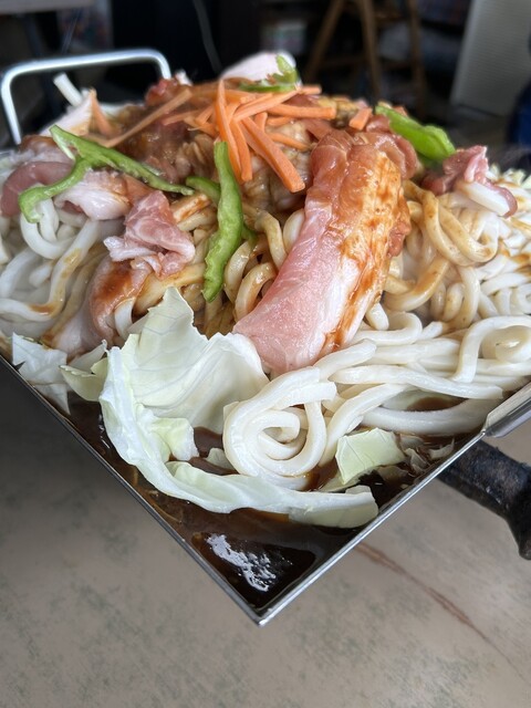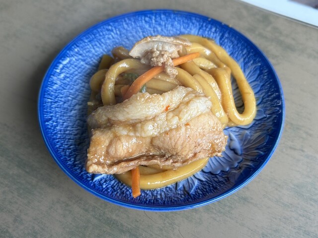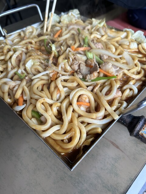 亀山みそ焼きうどんは、うどんと野菜や肉を甘辛い赤味噌べースのタレで炒めたお料理。