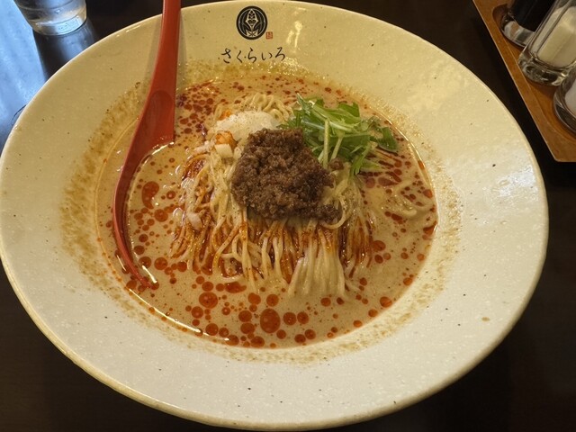 汁なし担々麺と日替り定食(エビフライ、ハンバーグ、チ...