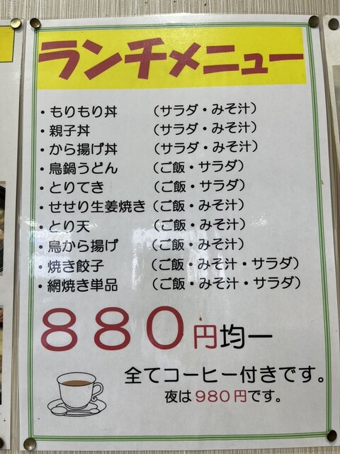 鶏焼肉のお店ですが、定食メニューが充実しており、お値段も良心的。