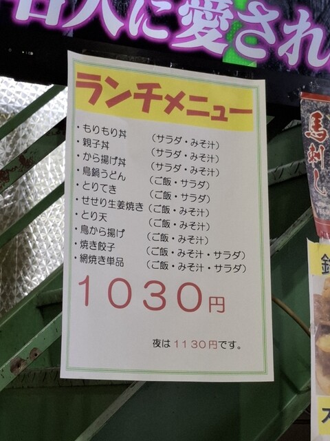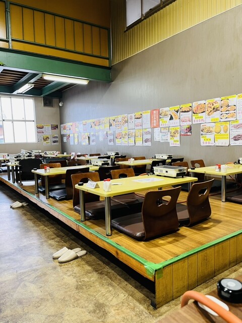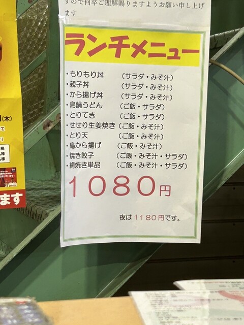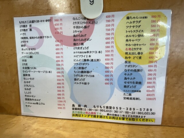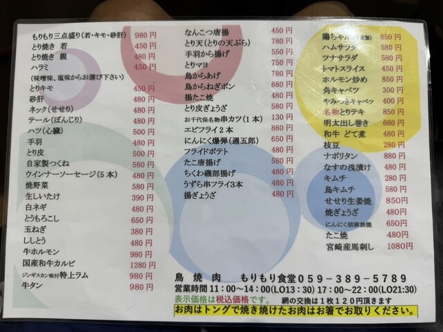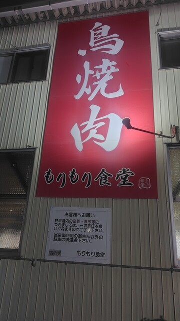 大きく赤い「鳥焼肉」が目立つもりもり食堂さんに初訪問。高い天井、広々した店内、何やら昭和感満点な雰囲気がいい感じです。