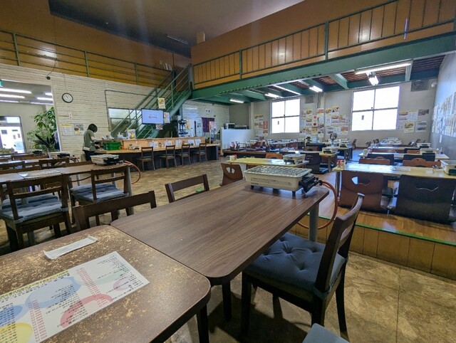 倉庫利用、、っぽいの建屋で、テーブル席と御座敷席。
