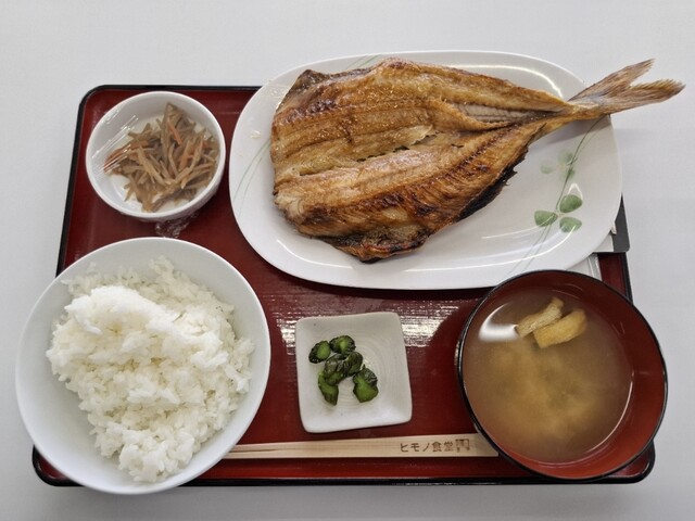 三重県に仕事で来たので、晩御飯は迷わずヒモノ食堂にしました。たまたまキンキのヒモノがありましたので、定食セット(ご飯、味噌汁、小鉢、漬物)を注文しました。約20分かけてじっくり焼かれたキンキの皮はパリ...
