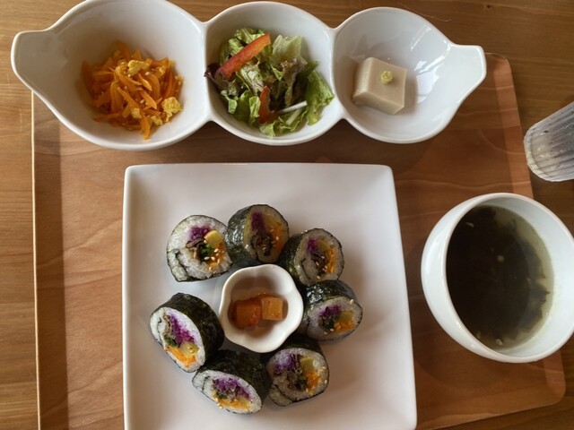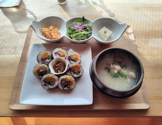 モーニング終了してしまい残念(>_<)営業日も不定になったので、行きたいと思ってから大分経ってしまいました。この日も私と同じ時間帯に数組来られたので、相変わらず人気だね~! 今回はモーニングで食べたキンパをもう一回食べたかったので、キンパランチを注文。グルテンフリーのチーズケーキが気になったの... 詳細を見る