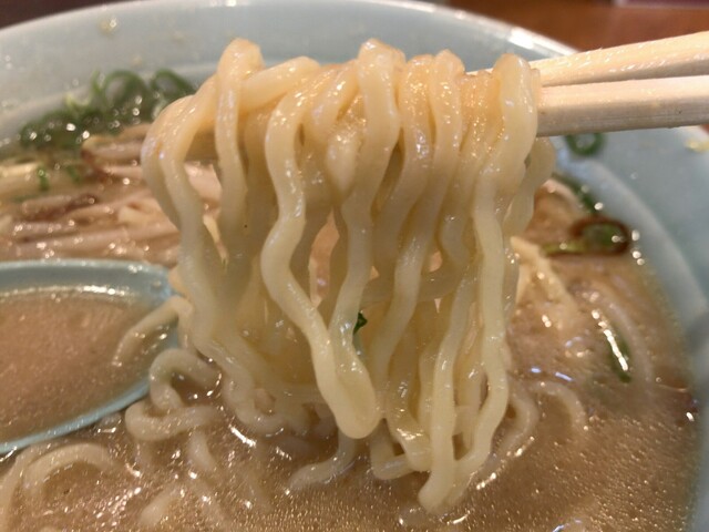 麺はスープがよくからむ太麺ちぢれ。