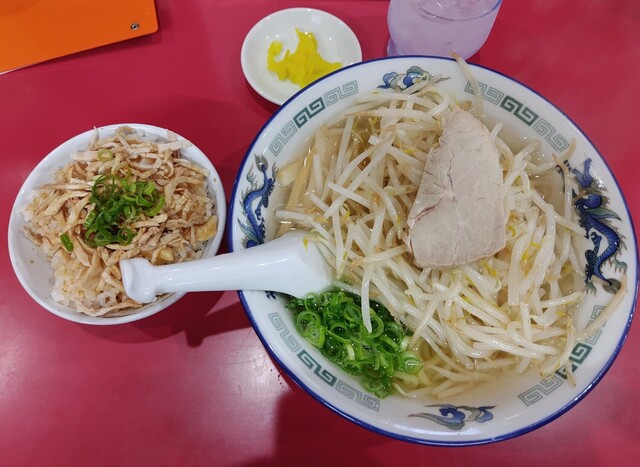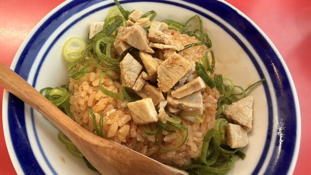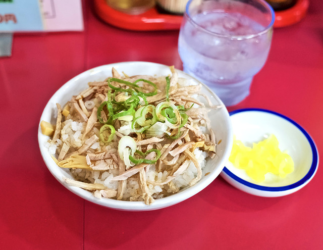 しばらく待っていると、ミニチャーシュー丼 がお先に到着。千切りにされ...