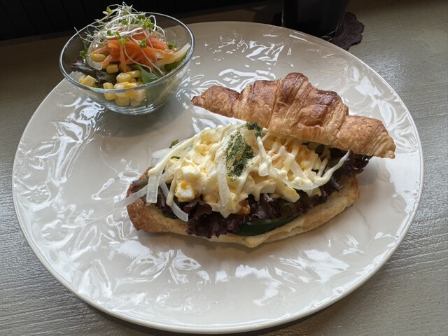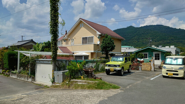 洋風のカフェで、入口は大通りに面している扉か、裏からも入れます。駐車場はお店裏にありますが、正面からでも裏からでも入れます。場所は多度大社の近く、温泉施設も近くにあり、登山後のおすすめスポット。11時までのモーニングにぎりぎり間に合いました。