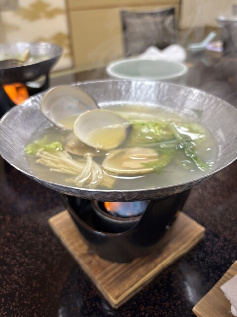 1万円のコースでどれもこれも蛤を駆使した美味しい料理ばかり、蛤鍋はスープまで完飲してしまいました。1万円でこれだけの品数、これだけの大きさの蛤が出でくるとはコス...