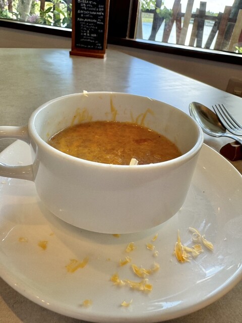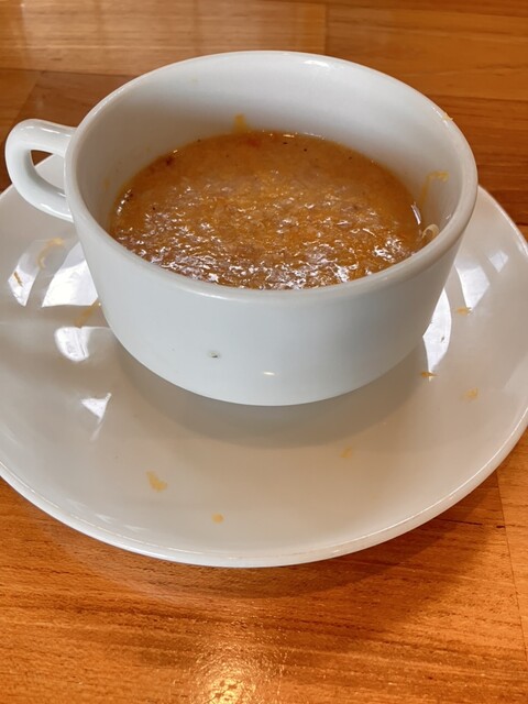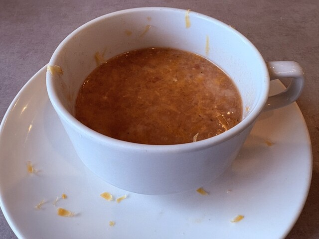 トマトスープに、残ったパンとチーズというもの。優しくて美味しい!!...
