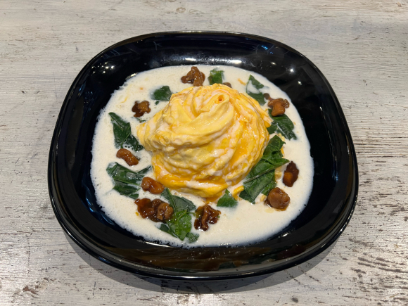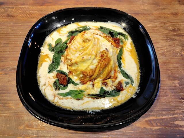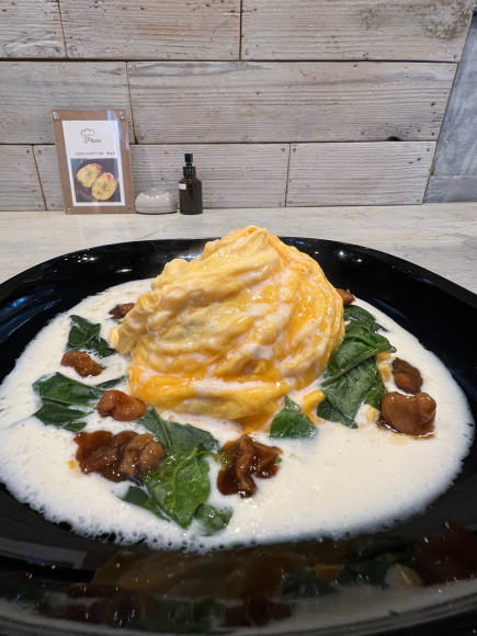 迷いましたが、ドレスドオムライスのチキンとほうれん草の照焼きクリームを注文しました。