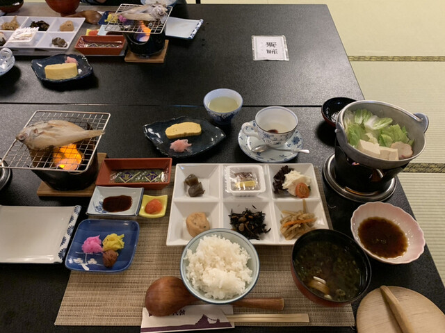 宿の方はみなさん親切で、とても居心地よく過ごすことができました。お料理は、事前にお伝えして子供用にはお子様御膳を用意していただきました。大人用にはお造りと鮑、お肉がついたコースで予約。お味はまぁ普通でした。