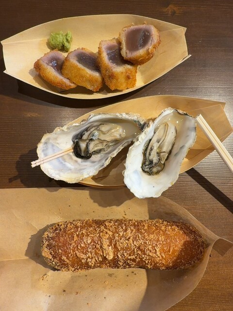 マグロのレアかつとカレーパンは、どちらもカラリと揚がっていて油も切れていて良い感じ。 子供が「このカレー、隠し味がある気がする」というので説明を読んでみると…ウツボのキーマカレー... 詳細を見る