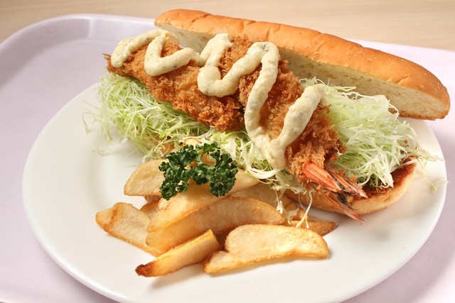 【近鉄宇治山田駅構内!】登録商標の開き海老フライ漣が展開するシュリンプキッチン サザナミ。 近鉄宇治山田駅構内にあり、普段使いでも観光で伊勢へお越しの際もご利用頂けます! 初代より伝わる”海老を開いて揚げる”製法により、長年多くのお客様に愛されてまいりました。こちらサザナミでは”海老カツバーガー”などの宇治山田店限定メニューもご用意しており、テイクアウトで食べ歩きにも最適♪店内でも店外でもプリップ...リの海老をお楽しみ頂けます!広々とした店内は席数が多く、お一人様でも複数人でもご来店頂けます。カフェメニューもあるので、もちろんカフェとしての利用も可能です。ご家族・ご友人を誘って是非お越しください!
