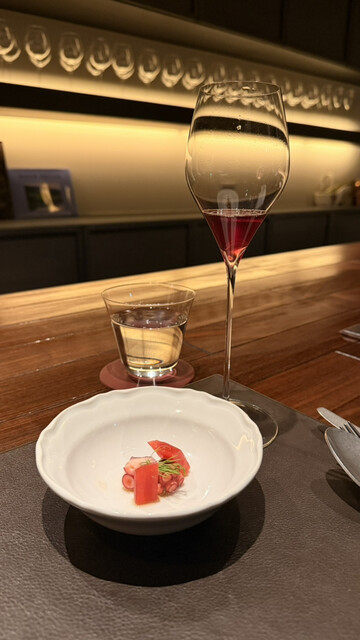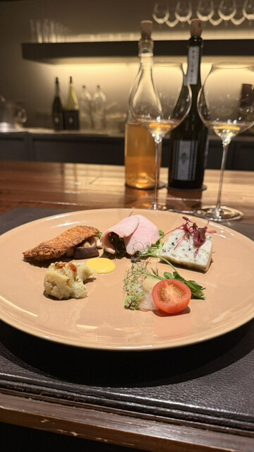 暖簾の下がった佇まいは、「本当にここ?」とおまいますが、店外のメニューと階段を登った先にイタリアンが!良い雰囲気です。店内にはカウンターとテーブル席があり、カウンターを案内されました。落ち着いた感じは好みです。
