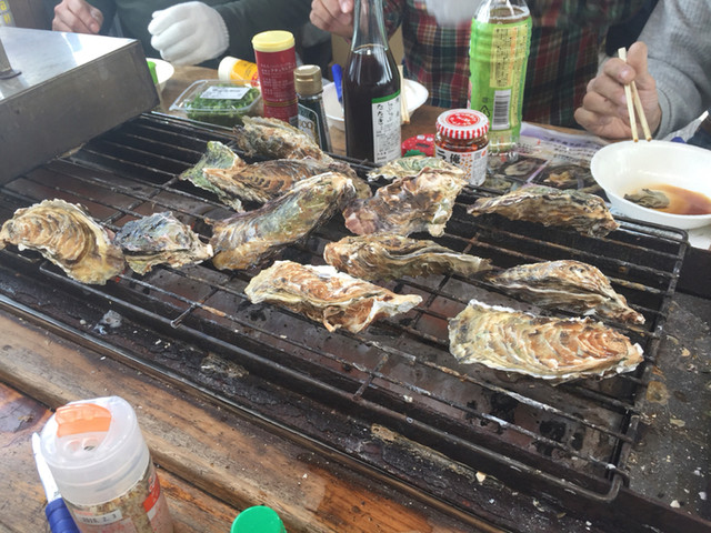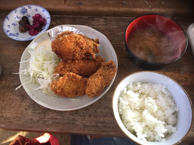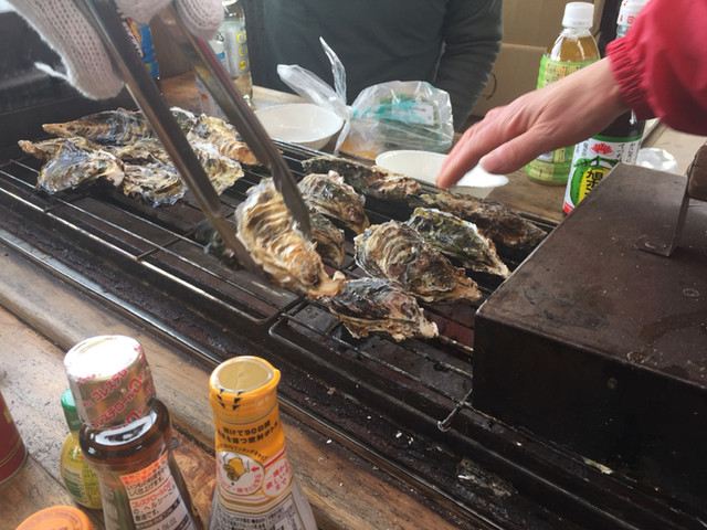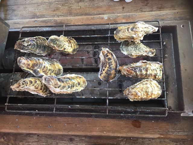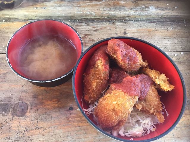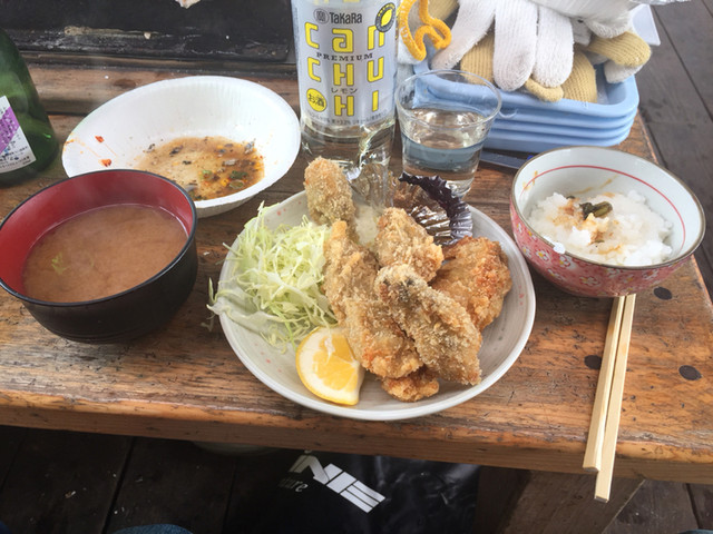焼き牡蠣食べ放題に牡蠣フライ丼(ソース)、牡蠣味噌汁、牡蠣時雨煮 |