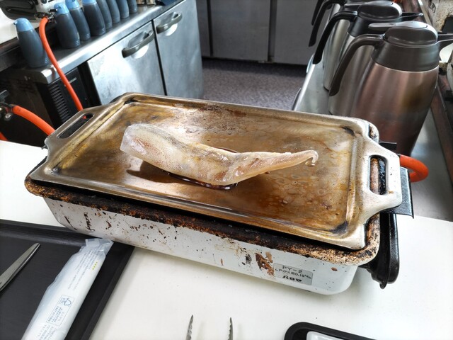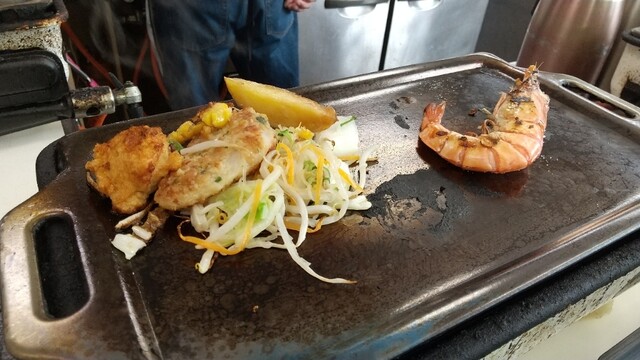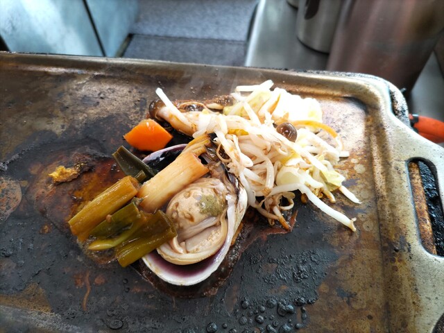 カウンターで目の前には年期の入った鉄板。