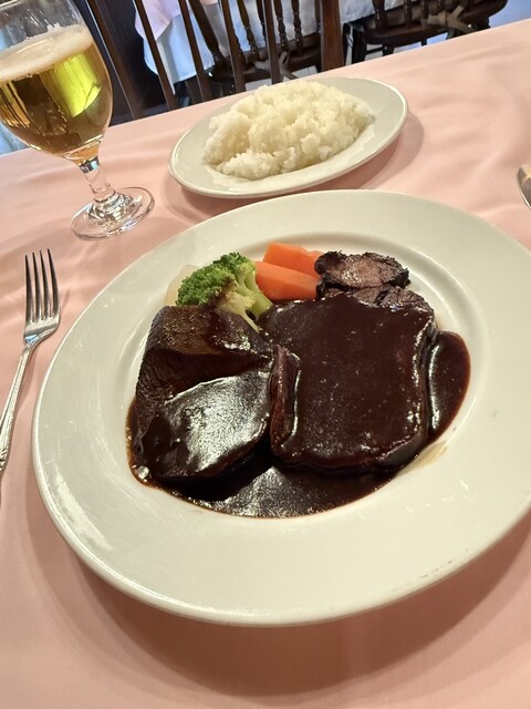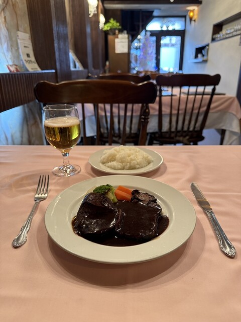 伊賀城の高さ30mの日本最大級の石垣を見たり街歩きをしました そんな中に目当てのお店はありました 入ると紳士淑女という感じの先客さんが食事中でした 私はジーパンなどの軽装でちょっと失礼してしまったかなと思いつつ席に案内されました メニューを眺めて「特選ヒレ肉 ビーフカツレツコース 100... 詳細を見る