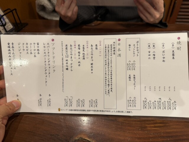 | ドリンク | 日本酒あり、焼酎あり、ワインあり、カクテルあり |