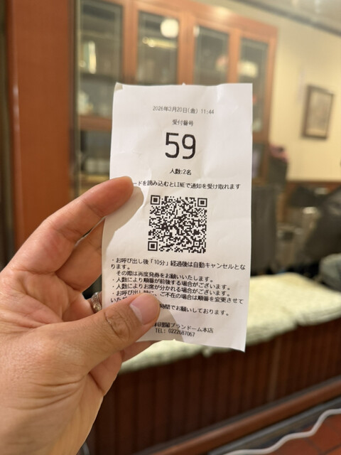 予約せずに訪問。仙台に着いて直行、開店前だけど、みなさん受付システムの整理券を早めにとって外出しているよう。私は券を取ってから