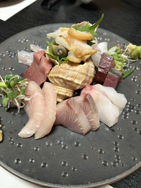 •お造り盛り合わせは、つぶ貝を入れて...