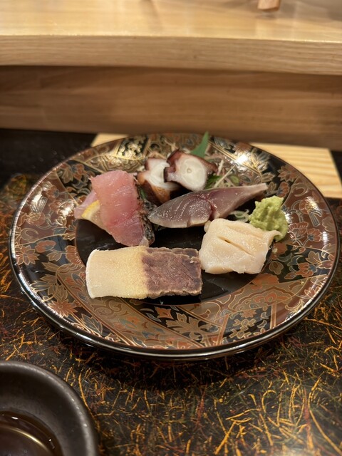 鰹と新玉ねぎ、蛸と鰆、つぶ貝の刺し身
