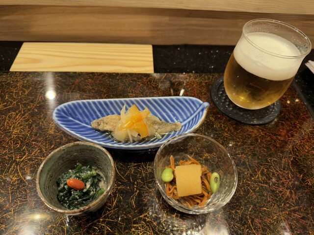まずはメヒカリの南蛮漬けはじめ前菜3種類