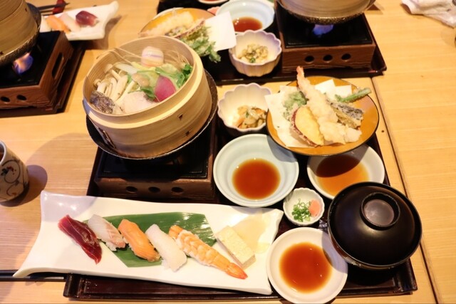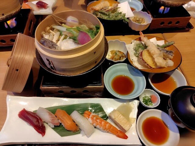 御膳の寿司とせいろ蒸しは、...