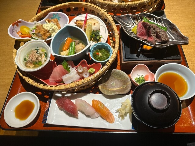 仙台駅からとほ数分。ホテルの地下にあるおとなしめの居酒屋さんです。県外からの客層にも対応できるように、メニューも豊富です。4人利用でボックスシート。コースもありましたが、御膳タイプもあったので、今回は...