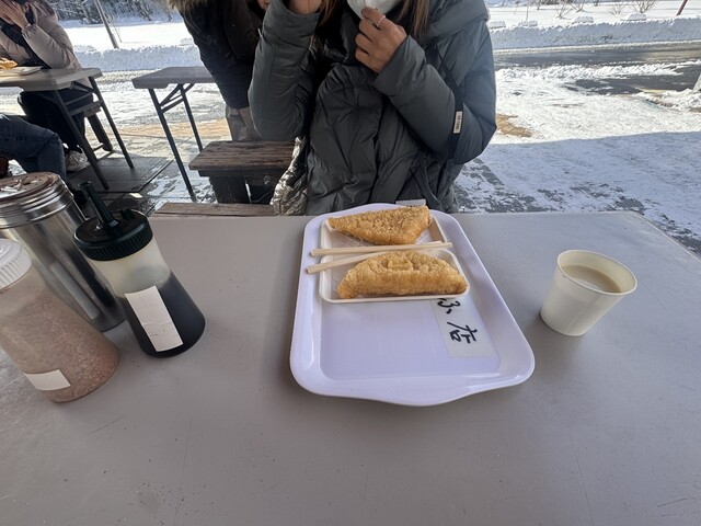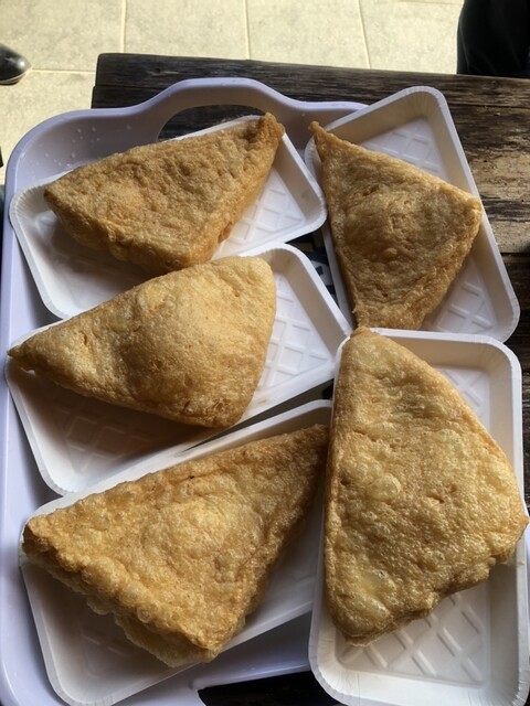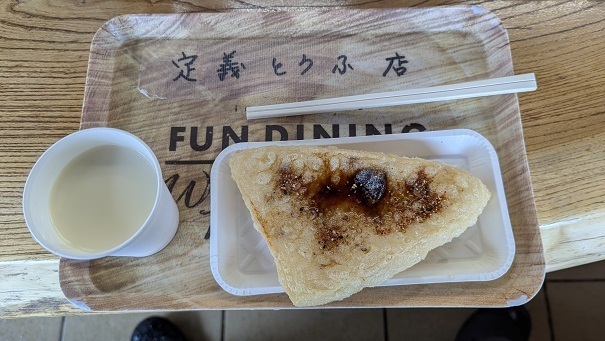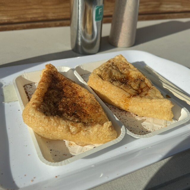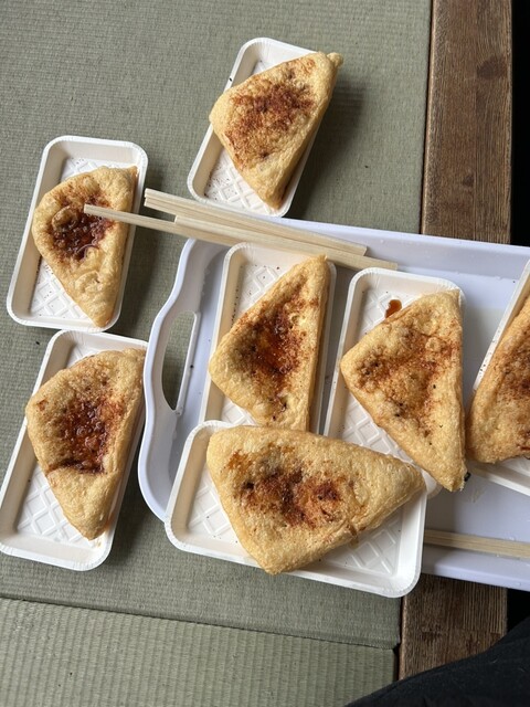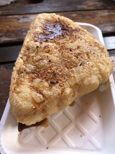 お参りを済ませた後、そこの門前にある有名な油揚げをいただきました。