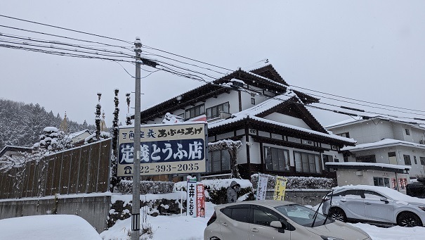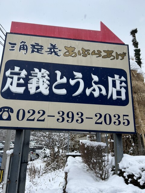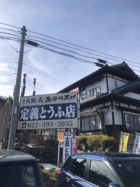 仙台に来た時に、居酒屋で三角油揚げの料理があり、仙台の人に名物であることを、聞いていました。今回、その本家ともいえる定義とうふ店に仙台駅よりレンタカーで、1時間弱かけて伺いました。