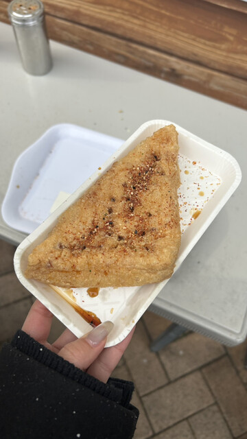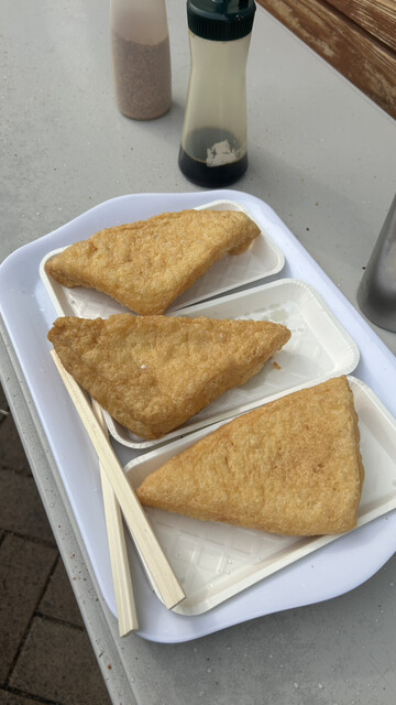名物の“三角揚げ”をいただきました。外はカリッと香ばしく、中はふんわりと豆腐の旨みが広がる絶品。シンプルに七味と醤油をかけるだけで驚くほど美味しく、素材の良さがしっかり伝わります。揚げたては特に香りが...