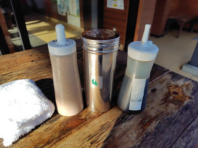 ニンニク入り七味と醤油をかけて、いただきます。相変わらず、
