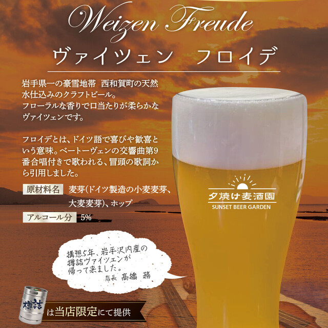一蘭 で、こってりにカスタマイズし過ぎてしまったラーメンを食べた後に笑 スッキリ、リフレッシュしたくなってこちらへ。 仙台では当店だけの提供♪ ヘリオス酒造 ヴァイツェン フロイデ ジョッキ 930円 を注文。 岩手県西和賀町の天然水仕込み。 アルコール分 5% 口当たりはや... 詳細を見る