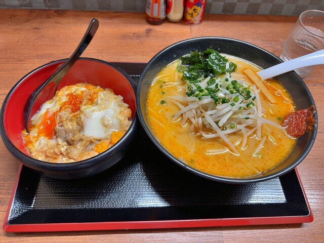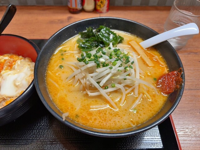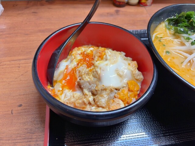 下調べして、ミニカツ丼のセットかなぁ、なんて素朴に思っていたけれど、比内地鶏ののぼりを見てしまうと、うーん、比内地鶏を試すかぁ、とCランチ・ミニ親子丼と味噌ラーメンのセット。1...