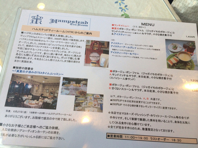 英国調をイメージした店内は、ウイリアム・モリスの壁紙にイギリス各地の花々を飾り、紅茶は色鮮やかなエインズレイの茶器に、もう郊外を散歩している気分。新鮮な食材で調理したランチ、スープ、ケーキ等は身体に優しく、元気を呼んできます。紅茶はインド、セイロン、国産、幅広く提供致します。 ご連絡等に、メール(hampstead.tea.order@gmail.com)&電話をご利用下さい。