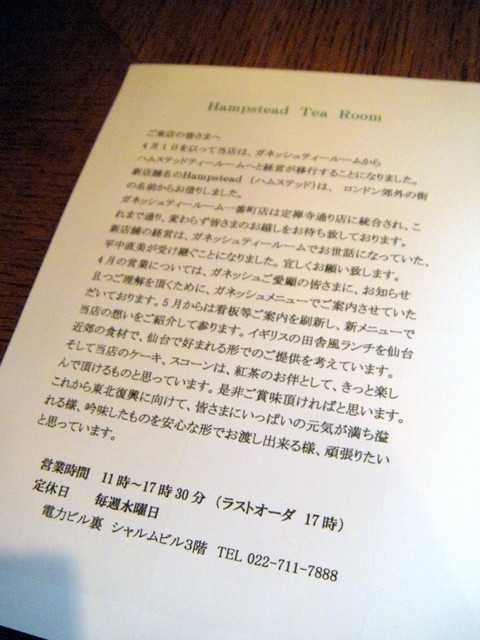 英国調をイメージした店内は、ウイリアム・モリスの壁紙にイギリス各地の花々を飾り、紅茶は色鮮やかなエインズレイの茶器に、もう郊外を散歩している気分。新鮮な食材で調理したランチ、スープ、ケーキ等は身体に優しく、元気を呼んできます。紅茶はインド、セイロン、国産、幅広く提供致します。 ご連絡等に、メール(hampstead.tea.order@gmail.com)&電話をご利用下さい。