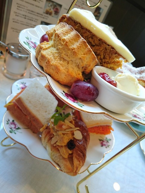 私が、いつもオーダーするのは、「アフタヌーンティーBセット 」。サンドウィッチ&スコーン&ケーキ+紅茶(ポット)のセットで ¥1900です。