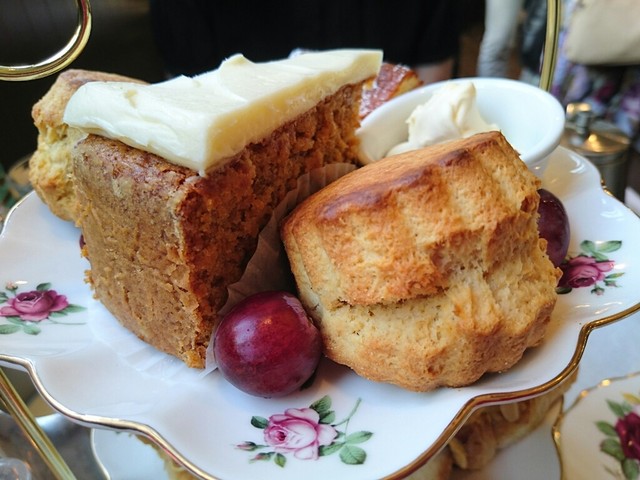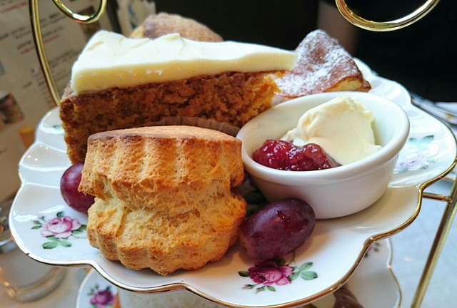 ケーキスタント上段には、選べるケーキ(私はキャロットケーキを)とスコーンは2個