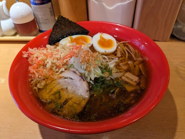 味玉海老そばガツン(並盛140g)※平日昼のみ大盛り無料 at えびそば えび助 仙台国分町本店950円