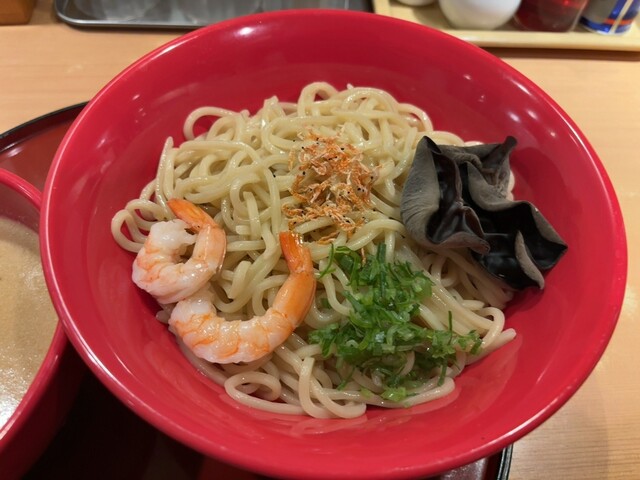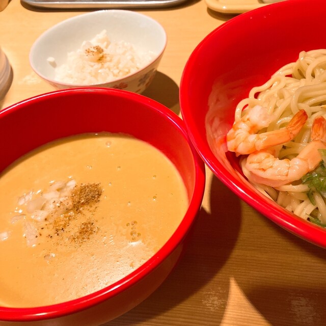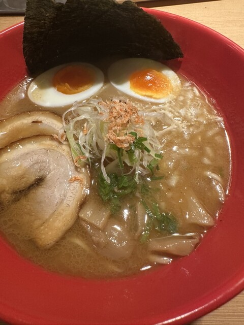 13時ほど〜 海老出汁欲して 国分町 えびそばえび助さんへ 3客ほど カウンターご案内 特製海老そばがつん1080円太麺 濃厚オマール海老そば1200円細麺 餃子(海老入り餃子)450円 オーダー 海老好き!楽しみ! 10分ほど同時提供 特製海老そばがつん 煮干し醤油... 詳細を見る