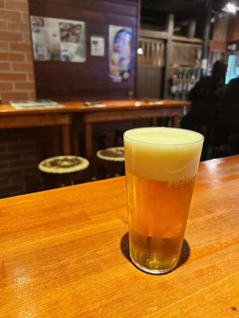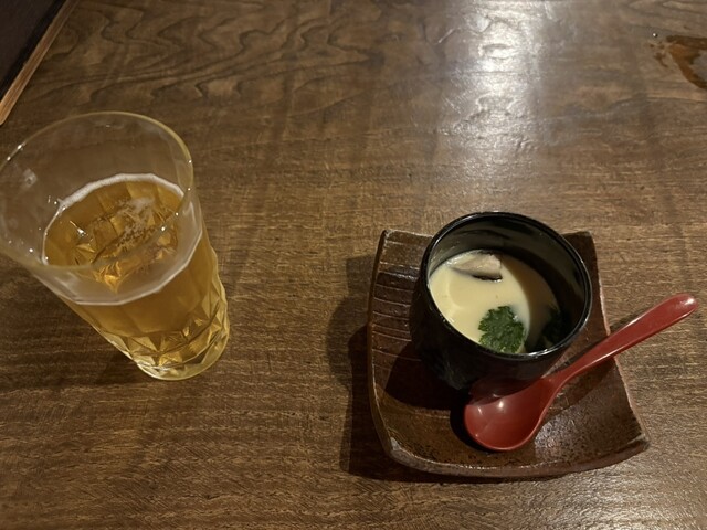 そぉーっとドアを開けると、カウンターとテーブル席。奥に貸切もできる部屋があるようです。ちょい飲み利用の旨を伝えると、入って右手のテーブル席を案内してもらえました
