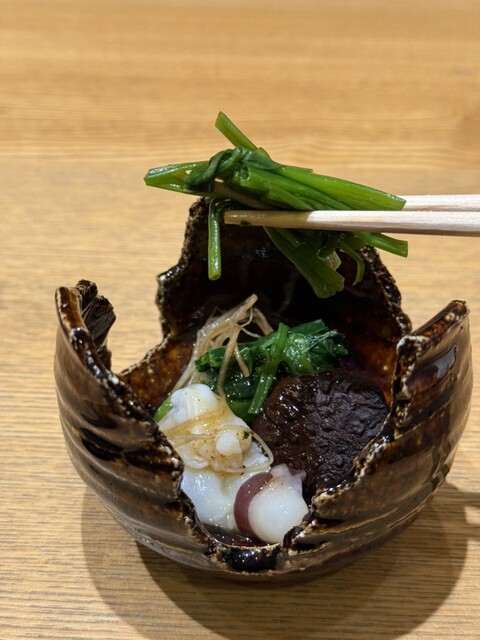 ・うるいと九条ネギ、ホタルイカと椎茸の酢味噌