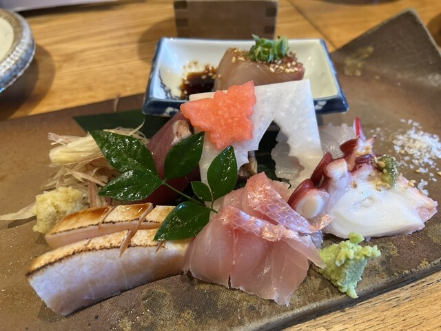 刺身盛り合わせはどれ食べても新鮮で、それぞれに合った食べ方で提供してくれます。