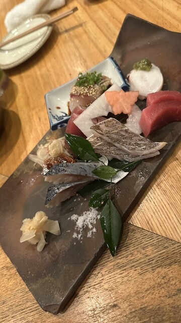 6種類ほど盛られた刺身をアテに、宮城県の酒蔵で作られた日本酒をいただ...