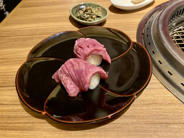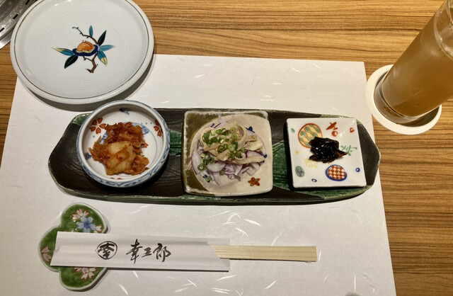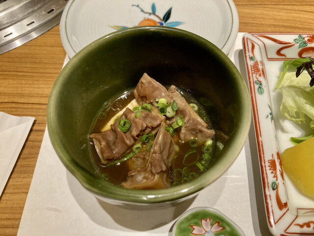 コースで漢方牛の焼肉をお願いしたところ、前菜のもつ煮からサラダ、刺身など、メインに入る前からおいしくて、こんなに焼肉食べる前に美味しい寄り道して大丈夫かなと思うほどでした