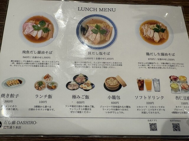 仙台遠征最終日だったが、予定変更することになり、早めのランチを済ませて帰ることに。ラーメン百名店のだし廊仙台南町通り本店へ。