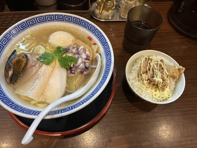 お勧めの貝だし塩そば ランチ飯にしました。