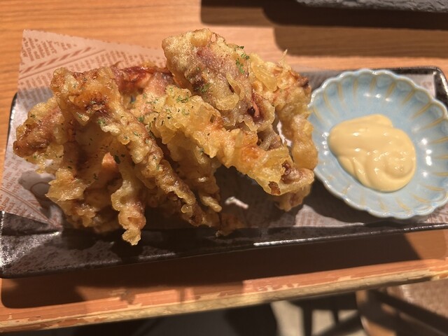 指定されて初でべそ 店内満席で大賑わい カウンターは女子またはカップル多し 予約してもらったのは 2名様専用の中洲コース/2h飲放付 飲放メニューは充分なラインナップ それとは別に「凍結丸ごとレモンサワー」 が1杯飲めるのがいいねー 冷菜盛りは 鶏皮ポン酢やかねふくの明太子など 博多推しです 刺身は 馬刺し赤身or薩摩南洲鶏たたき どちらか選択 たたきに... 詳細を見る