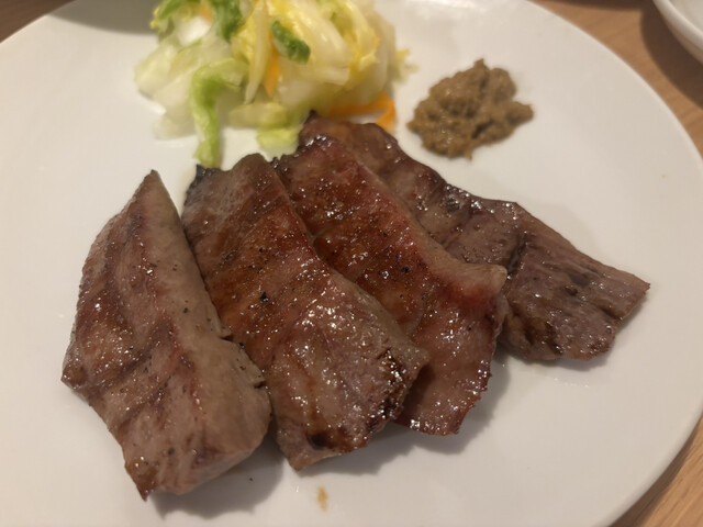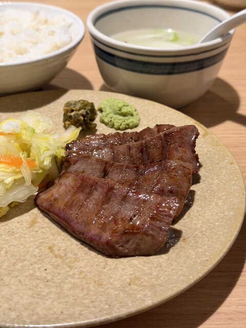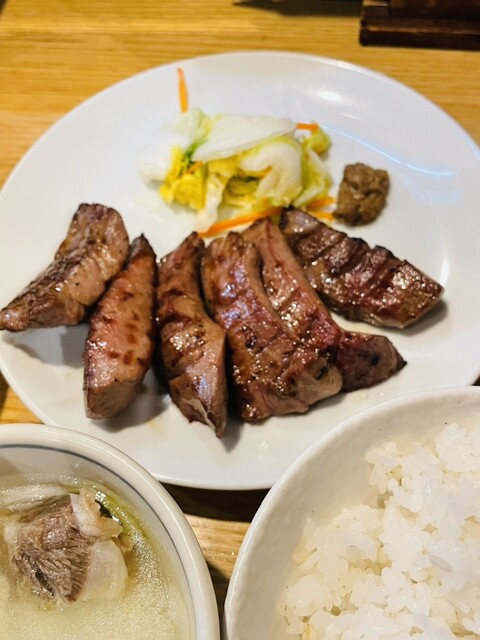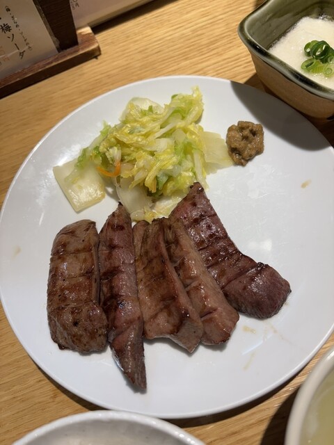 炭火で焼かれた牛タンは香ばしくていい香りが広がって、食べる前からちょっとテンション上がる感じ。しっかり噛みごたえあるのにちゃんと柔らかくて、噛むたびに旨みがじんわり広がるのが嬉しい。シンプルだけど満足...