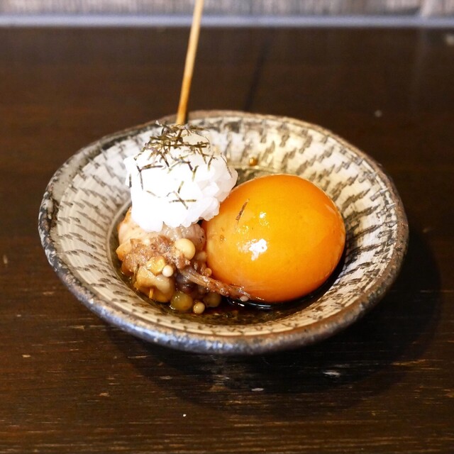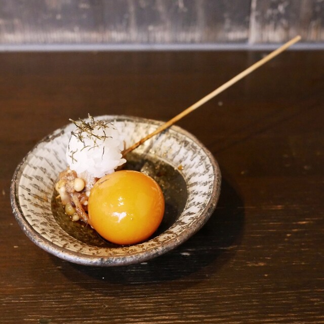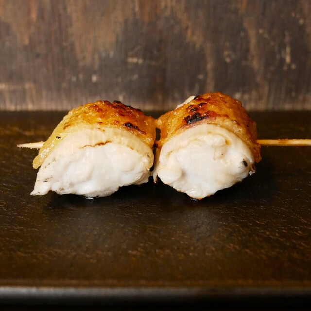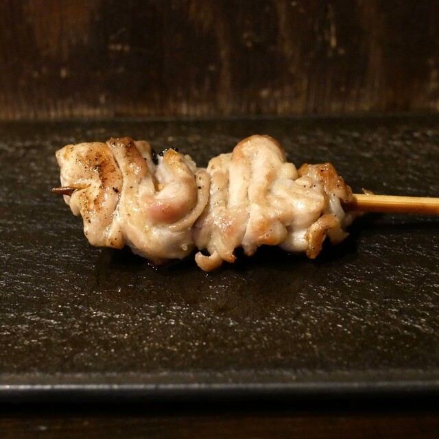 看板、お品書きない完全予約制の隠れ家的焼き鳥店。店主が魅力された足摺地鶏、黒さつま鶏、野田鴨と旬の野菜をおまかせストップ制で。"足し算焼き鳥"という新たな焼き鳥を紀州備長炭で一串一串丁寧に焼き上げ、順番に出る串は至福の時間となる